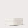For those times when you travel and don’t want to leave your shine behind. Meet the Large Frankie Jewelry Case in Moonbeam. With a soft, microfiber-lined interior featuring smartly designed loops, straps, and slots, this zippered jewelry travel case keeps your favorite pieces in place, protected, and artfully organized. Lightweight and light on the planet, this eco-friendlier travel jewelry organizer is made with Repreve® recycled polyester created by repurposing 2 plastic water bottles. Features a luxe yet low-key shine. Loves going places, but also feels right at home on your dresser.
